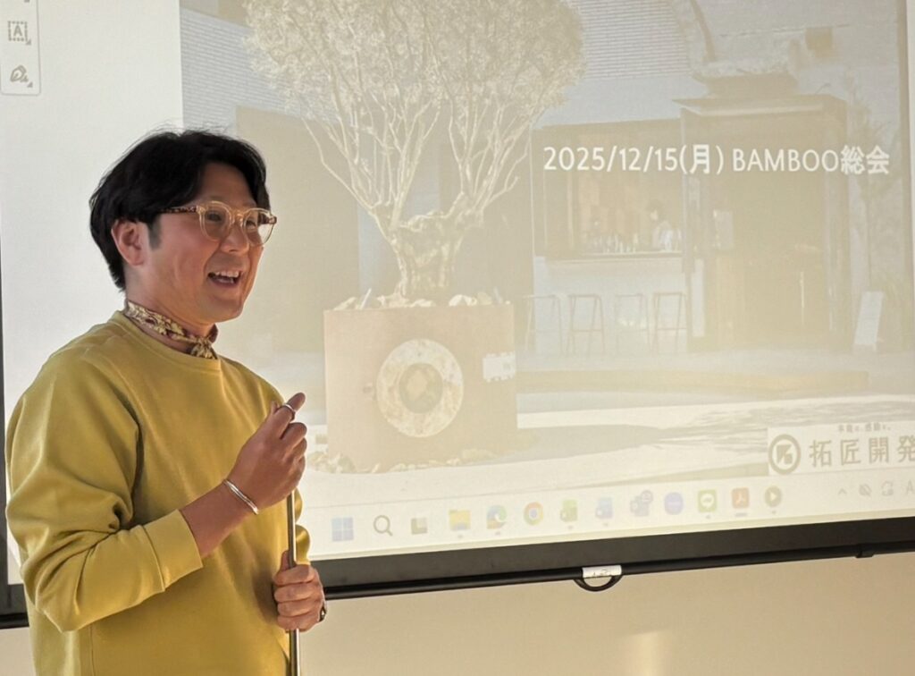 今回は、千葉県を拠点に「本能に感動を」を呼び起こす独創的な街づくりを展開する、拓匠開発の工藤社長にプレゼンテーションをしていただきました。