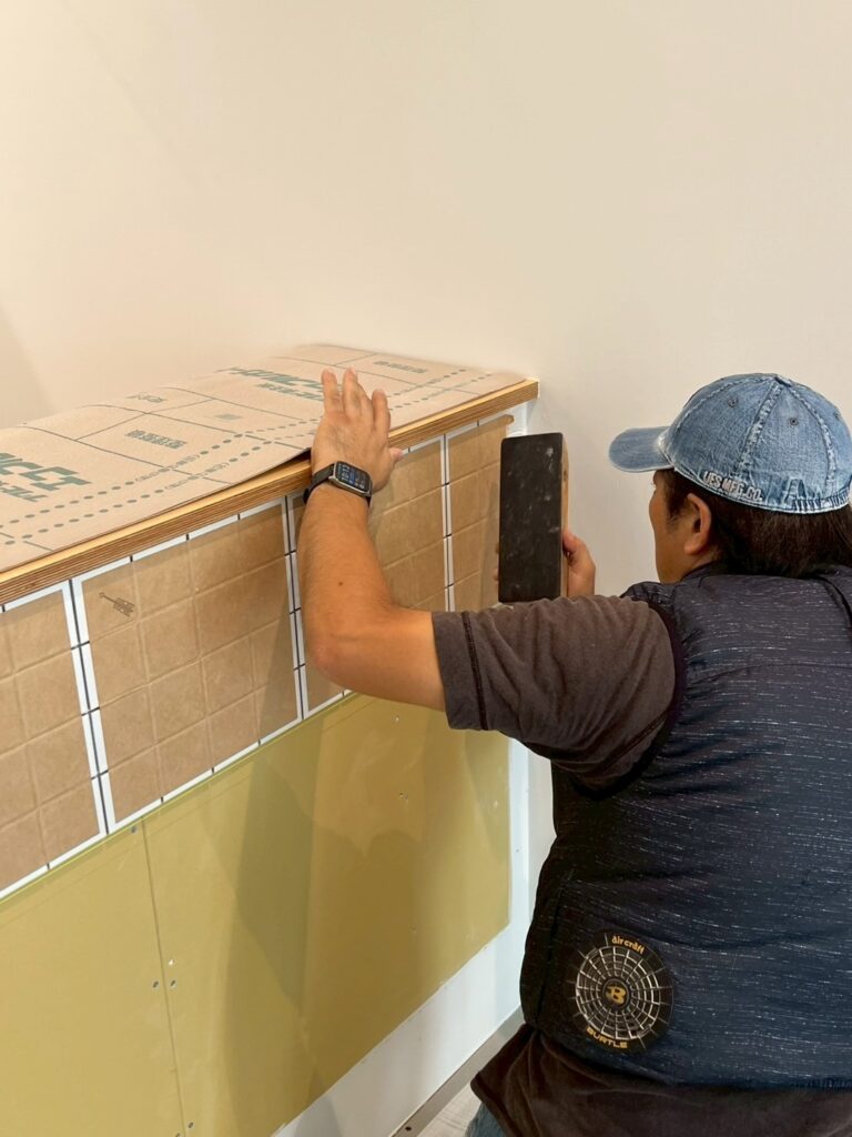 ティーアートワークスの強みは、昔ながらのタイル施工技術と新しい工法を積極的に融合させている点にあります。特に、現在ではほとんど見られなくなった「浴槽を設置してタイルを貼る」といった昔ながらの工法にも対応できる一方で、新しい素材や技術も躊躇なく取り入れています。